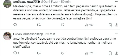 Segundo informações do jornalista Samir Carvalho, pessoas de dentro do Corinthians estão insatisfeitas com o trabalho do treinador português.