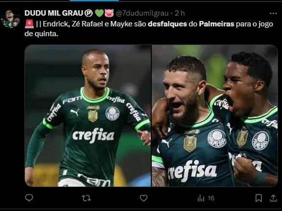 O Palmeiras tem três desfalques confirmados para o jogo da segunda rodada da Copa Libertadores da América 2024. São eles: Zé Rafael, Endrick e Mayke. Abel Ferreira precisa encontrar soluções.