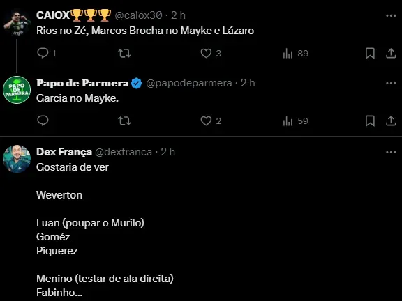 Isso porque cinco campeões paulistas podem ser preservados no confronto em casa. O Porco estuda poupar Raphael Veiga, Flaco López, Aníbal Moreno, Piquerez e Murilo.