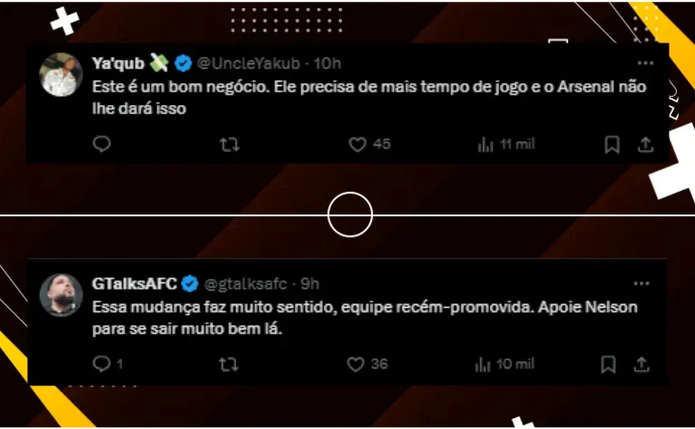 “Leicester City abre negociações com o Arsenal por Reiss Nelson. Acordo de empréstimo com obrigação de compra, em negociações sobre termos financeiros com o Arsenal. Leicester, confiante de que pode persuadir Nelson se os clubes chegarem a um acordo, já que ele trabalhou anteriormente com Steve Cooper.”, relatou o jornalista em suas redes sociais.