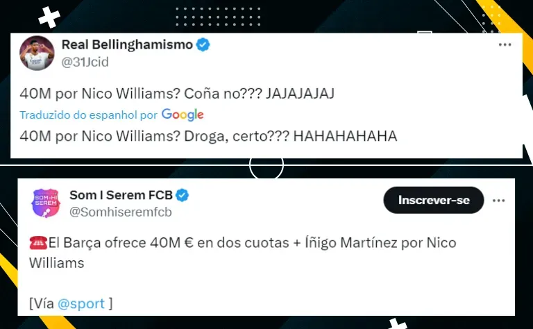 O Barcelona conta com a vontade de Williams em jogar com Flick para ter sucesso na operação. O jovem é bastante amigo de Pedri e Yamal, por exemplo, e a ideia de Laporta é ter todos eles no time de Flick.