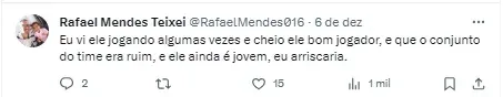 O clube busca uma reposição para o setor e pode apresentar uma proposta em breve, ainda segundo a informação.