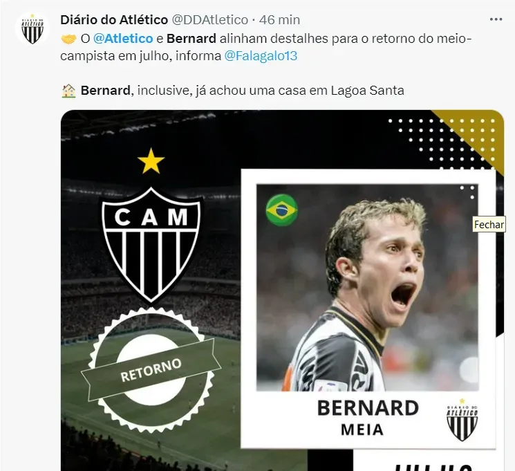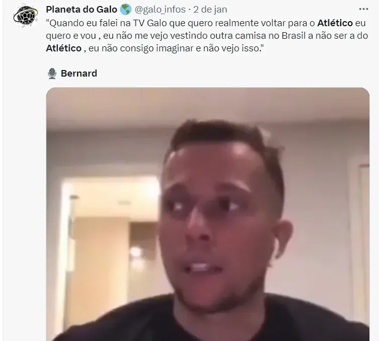Bernard e Galo deverão firmar um contrato em julho deste ano. O Atlético tem interesse no jogador e o atleta deseja mais do que tudo voltar ao clube do seu coração.