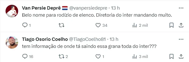 A contratação do Inter é a custo zero, já que o jogador estava livre no mercado da bola após rescindir com o Atlétco-MG. O clube pagará apenas seu salário mensal, abaixo de R$ 400 mil, segundo informa Lucas Collar.