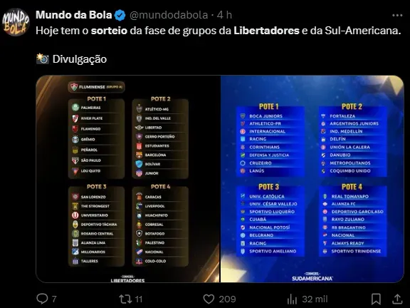 Foto do pote do sorteio Libertadores divulgada pela Conmebol nas redes sociais