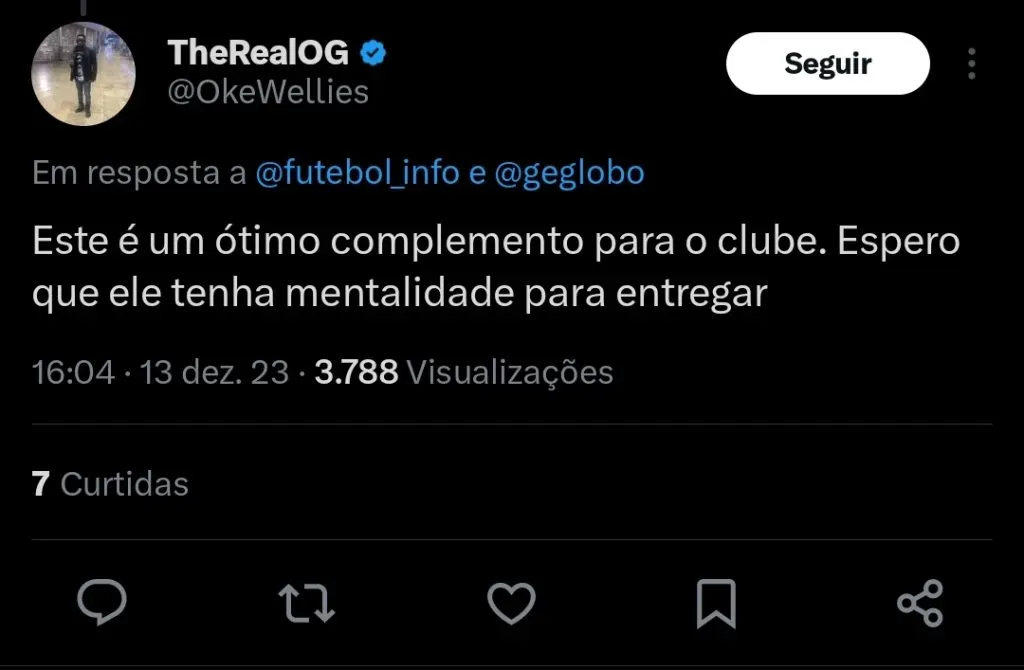 A equipe vem observando a situação do jogador há algum tempo, e tentou realizar a sua chegada em outras janelas. Agora, existe um otimismo de que o negócio poderá ser sacramentado, e que ele possa fazer parte do elenco a partir de janeiro.