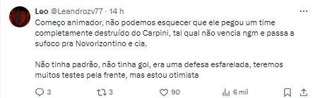 As mudanças já são vistas e elogiadas em pouco tempo de trabalho que possui. O clima mudou e agora com Zubeldía no comando e mostrando que é capaz, a torcida enxerga coisas maiores nesta temporada.