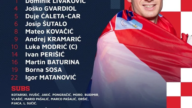 Croácia: Livakovic; Sosa, Sutalo, Caleta-Car e Gvardiol; Perisic, Modric, Kovacic e Sosa; Kramaric; Baturina e Matanovic.
