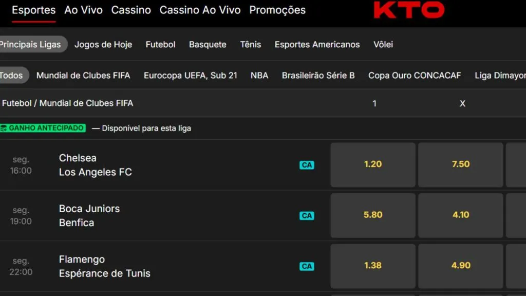Assim, uma das dicas de aposta para a Copa do Mundo de Clubes é acessar o site da KTO e analisar todos os mercados disponíveis.