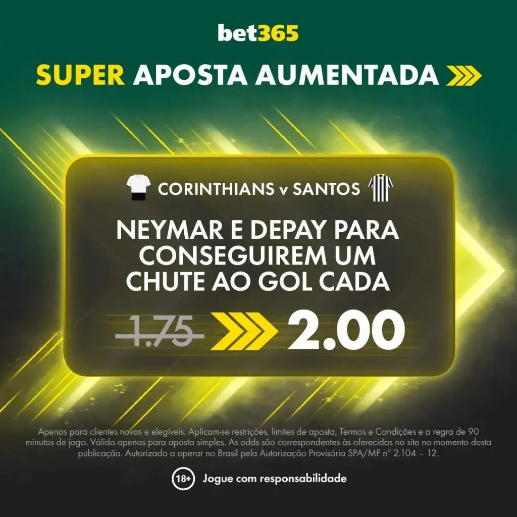 Tem clássico com promoção na bet365. Nesta quarta-feira (12), Corinthians e Santos se enfrentam na Neo Química Arena, às 21h35 (de Brasília), em duelo válido pela nona rodada do Campeonato Paulista.