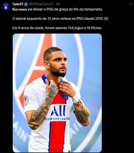 Kylian Mbappé já anunciou que deixará o PSG ao fim da temporada e possivelmente jogará pelo Real Madrid. De acordo com o GE, além do craque francês, o veterano lateral-esquerdo, Layvin Kurzawa, foi mais um do elenco parisiense que anunciou sua saída ao fim de seu contrato.