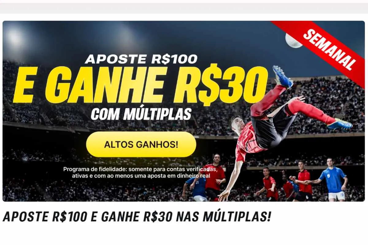 Para participar, o usuário deve ativar a oferta na área de promoções da conta. Após a ativação, é necessário realizar apostas múltiplas em partidas de futebol até atingir o valor acumulado de R$ 100 dentro do período promocional.