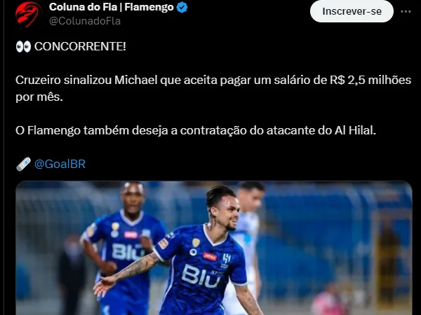Em 2021, o Flamengo aceitou vender Michael para o Al-Hilal, da Arábia Saudita, pelo valor de US$ 8,4 milhões (cerca de R$ 45,5 milhões na cotação atual). Agora, o Robozinho pode retornar ao Brasil.