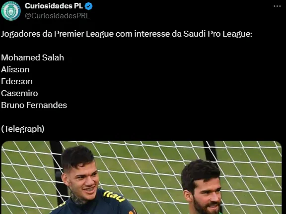 O Telegraph dá conta que Mohamed Salah puxa a fila e Alisson é outro do Liverpool que está na mira dos árabes. Dupla do United também está na lista: Casemiro e Bruno Fernandes.