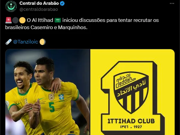 Marquinhos foi um dos nomes especulados no mercado da bola do Sauditão nas últimas semanas e agora o Casemiro apareceu ao lado do defensor como possibilidade no time de Karim.