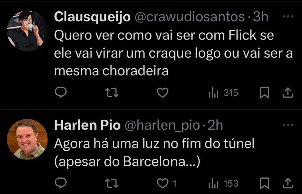 O Barcelona acertou a contratação do técnico Hansi Flick para substituir Xavi. Segundo informações da imprensa espanhola, o ex-técnico do Bayern de Munique e da seleção alemã assinará um contrato de duas temporadas e assumirá o comando do time catalão.