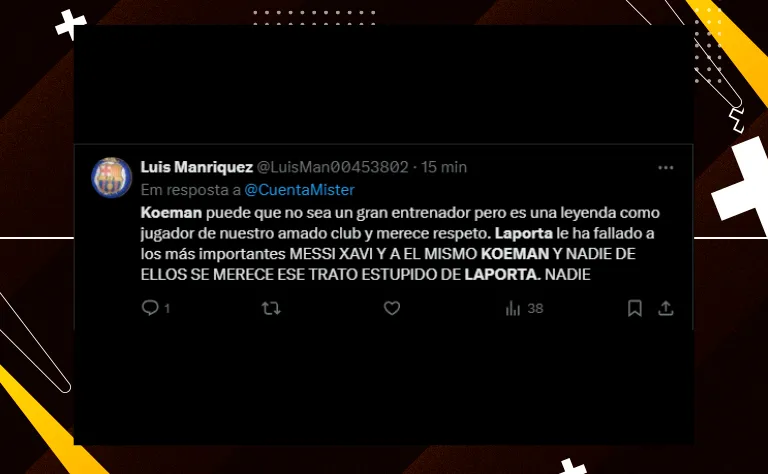 Koeman voltou a criticar a gestão de Joan Laporta no Barcelona. O holandês deixou claro que enquanto o atual presidente estiver no comando do clube, dificilmente a equipe irá conseguir ter sucesso nas competições.
