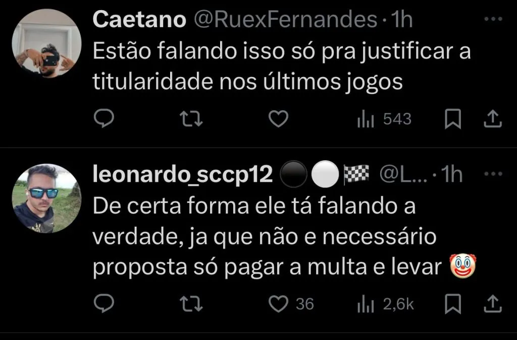 Durante a coletiva de imprensa, Augusto Melo foi questionado sobre a situação do goleiro Carlos Miguel. E foi direto em sua resposta: “O Carlos Miguel está treinando, não tive nenhuma proposta. Até agora não chegou nada, o menino está aí trabalhando.” Afirmou o presidente do Corinthians.