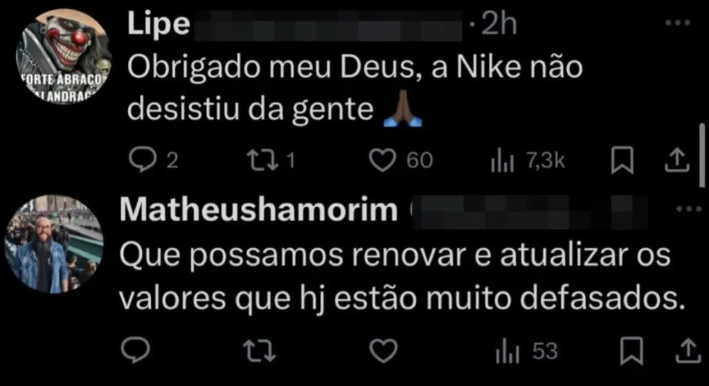 No Corinthians desde 2003, a Nike tem uma relação duradoura e positiva com o clube. A empresa expressou seu desejo de continuar o vínculo e aguarda a resposta da diretoria corinthiana.