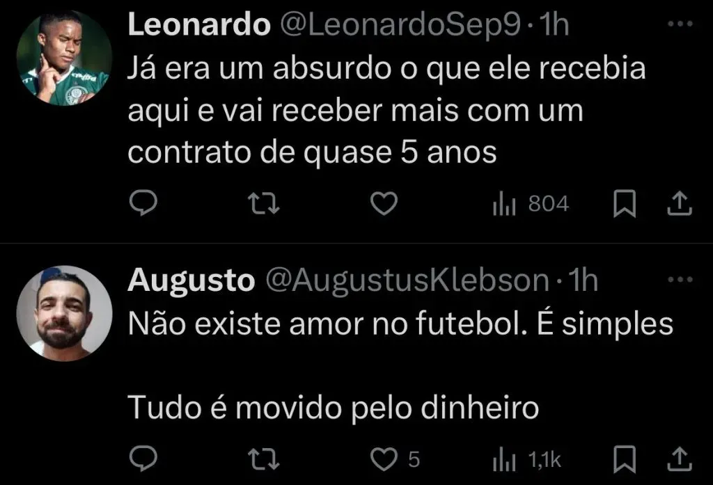 Na última semana, o atleta e seus representantes procuraram a diretoria do Palmeiras para demonstrar interesse em ser negociado, alegando que a proposta era ‘irrecusável’. A diretoria, compreendendo a situação e o desejo do jogador, decidiu facilitar a saída de Dudu.