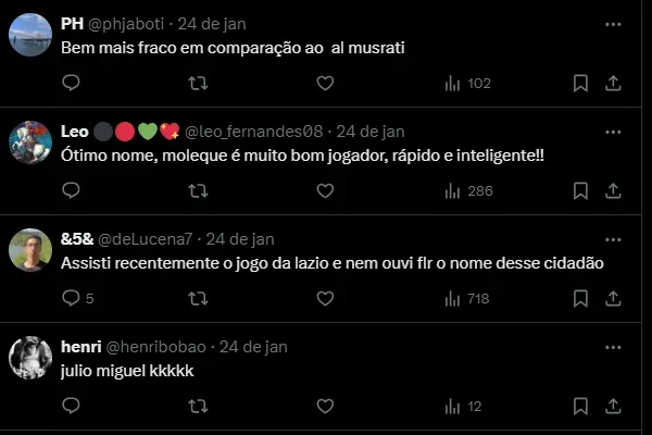 Na última temporada, o brasileiro nascido em Poções disputou 17 jogos, com três gols anotados. Ele está avaliado em 4 milhões de euros (R$ 22 milhões) pelas projeções do Transfermarkt.