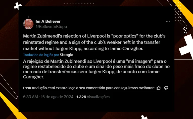 O gigante da Premier League esteve próximo de anunciar o meio-campista Zubimendi. No entanto, o atleta optou por seguir na Real Sociedad. Por conta disso, o ex-jogador do clube inglês, Jamie Carragher, criticou a postura dos Reds.