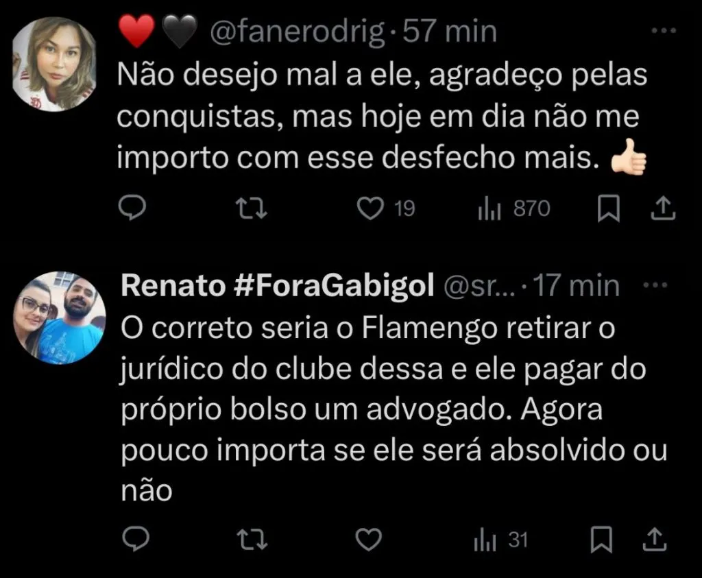 Gabriel Barbosa, além da indefinição do julgamento, também vive o momento mais conturbado de sua passagem pelo Flamengo. Neste mês, vazou uma foto do jogador com a camisa do Corinthians, o que gerou uma grande revolta por parte dos torcedores do Flamengo.