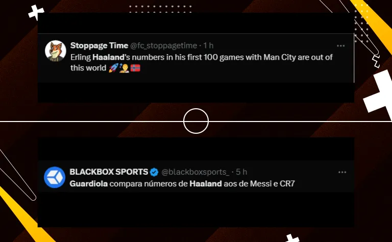 Além de ter completado o 100 jogo pelo Manchester City e marcado o seu gol de número 91 pelo clube, Haaland assegurou outra marca. O jogador sempre anotou tentos em estreias desde que se transferiu para o Borussia Dortmund, da Alemanha, na temporada 2021/2022.