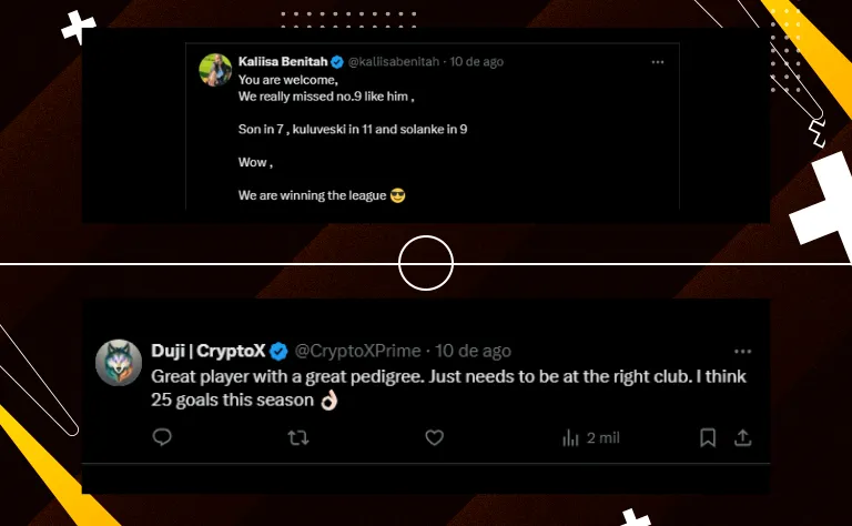 “Dom (Solanke) é um ótimo jogador, joga com alta intensidade, alta velocidade. Com certeza ele terá chances neste time com a forma como Ange (Postecoglou) joga. Você viu isso hoje, com dois times de ponta se enfrentando. Então acho que é uma ótima contratação. Eu o vi no vestiário e desejei tudo de bom para ele e, claro, espero que ele tenha uma boa temporada”, declarou à Sky Sports.