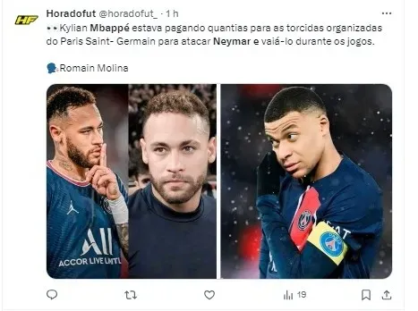 Segundo informações divulgadas pelo jornalista Romain Molina neste domingo (12), o atacante francês teria supostamente influenciado os Ultras, a torcida organizada do PSG, para vaiarem Neymar durante os jogos.
