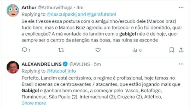 Em resposta, Landim reafirmou a importância do atacante, mencionando uma pesquisa que indicou o jogador como o segundo maior ídolo da história do clube, atrás apenas de Zico.