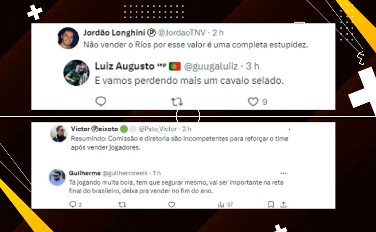 No caso especificamente de Ríos, ele tem vínculo até dezembro de 2026 e o clube já deixou claro que ele só sai caso algum clube pague a multa rescisória, que está na casa de 100 milhões (aproximadamente RR$ 616 milhões).