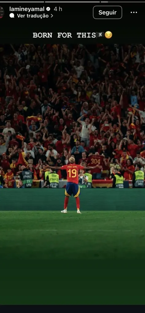 Em outro post no Instagram, Yamal escreveu “Nasci para isso”, junto com uma foto dele comemorando um gol pela seleção. A frase mostra o quanto ele está confiante e também lembra como sua carreira cresceu rápido. Com só 17 anos, ele já se tornou um dos jogadores mais perigosos da seleção.