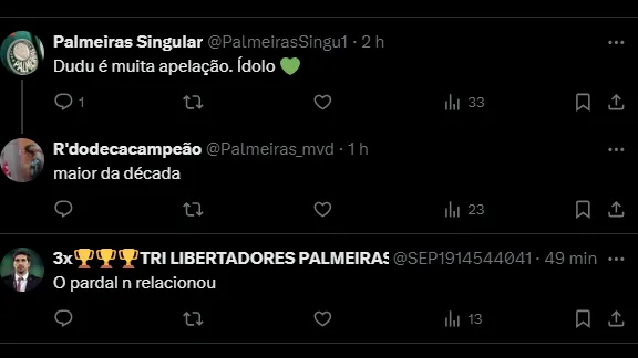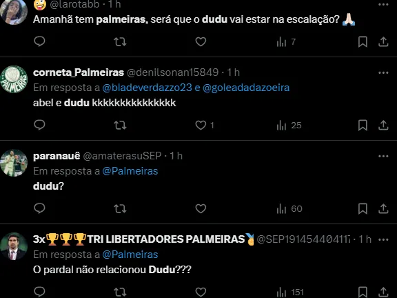 Dudu pensa em deixar o Palmeiras e deseja pelo menos 50% do que recebe hoje para aceitar um novo desafio na trajetória profissional. Nos últimos meses, o Athletico havia aparecido como interessado nele.