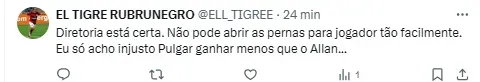 O staff do atleta sabe que sua posição é sensível no elenco, por exemplo. Igor Jesus ainda vive altos e baixos e Allan não se firmou. Outro ponto importante, é que Pulgar vem recebendo sondagens no mercado, do Monterrey (MEX), e Porto, de Portugal, mas o jogador vê com bons olhos permanecer no clube e quer resolver logo a situação.