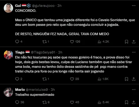 Por fim, o técnico são-paulino afirmou que o Tricolor foi superior ao Corinthians e novamente ponderou sobre a organização dos jogos, ressaltando que em jogos dessa magnitude as duas equipes deveriam chegar em condições iguais.