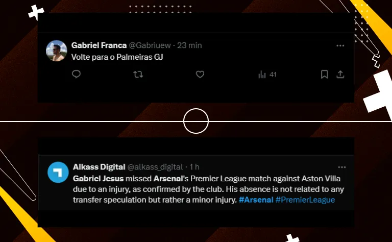 Após a vitória sobre o Aston Villa, o técnico Mikel Arteta conversou com a imprensa e explicou os motivos de Gabriel Jesus não estar à disposição: “Infelizmente, na quinta-feira, no treino, bem no final, ele sentiu algo na virilha. Precisamos avaliá-lo. Precisamos fazer uma ressonância magnética para ver, mas ele não estava disponível para o jogo”, disse.