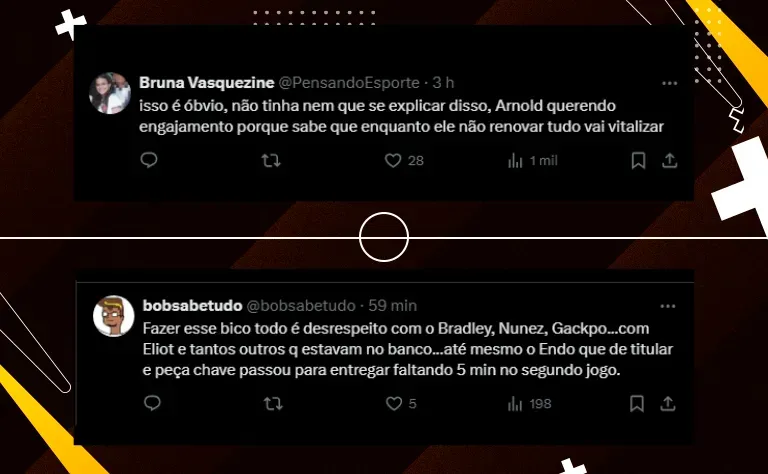 Após o duelo, Arne Slot concedeu entrevista e minimizou o desentendimento com o jogador inglês. O atleta deixou o jogo logo após o gol de Salah, faltando 18 minutos para o confronto acabar.
