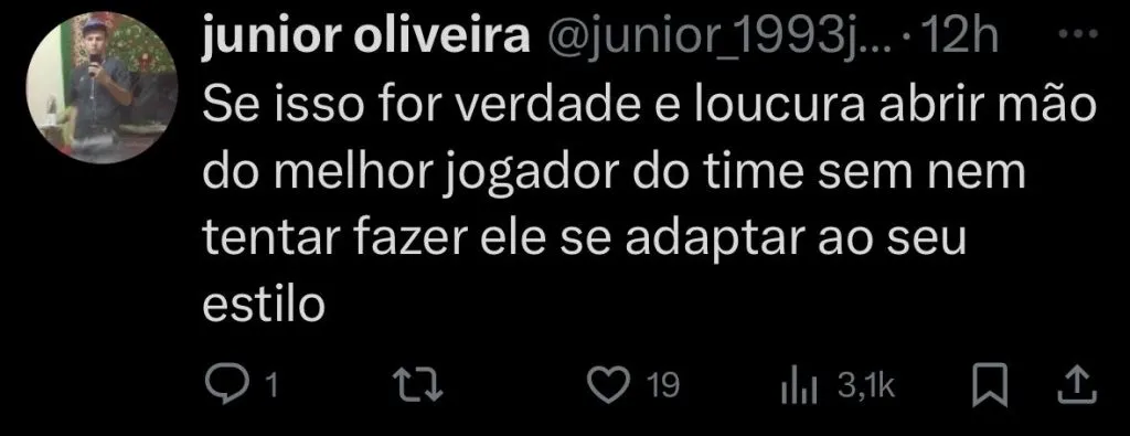 O treinador entende que o jogador não se encaixa no estilo de jogo que ele busca implementar. Com isso, o ponta direita italiano deve sair no verão.