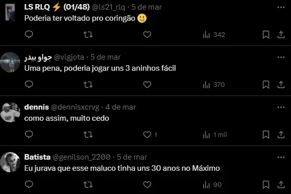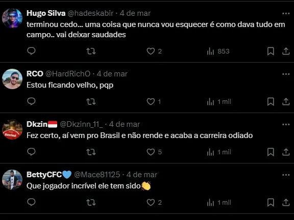 Reação dos torcedores com aposentadoria