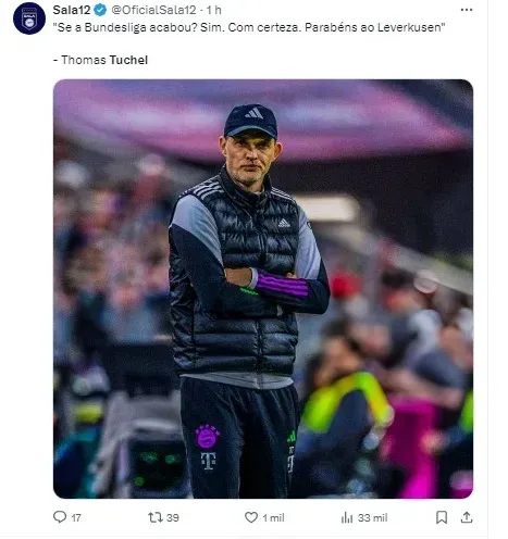 “Se a Bundesliga acabou? Sim, isso está claro. Parabéns ao Bayer Leverkusen. A corrida pelo título acabou”, declarou o treinador.