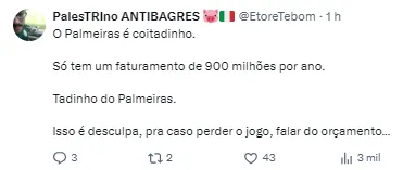 Ele deu uma resposta um tanto quanto ‘atravessada’ ao dizer que a equipe carioca possui mais do que o Palmeiras, por exemplo.