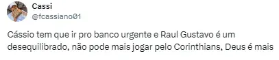 Se tratando do goleiro Cássio, o jogador deu um forte desabafo após o revés do clube, cogitando até mesmo uma saída pela pressão e críticas que vem sofrendo.