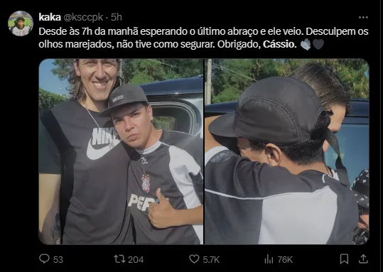 Ainda, Cássio ressaltou o respeito à instituição e agradeceu aos profissionais, como Fabinho Solado, por dirigir sua saída do clube de maneira saudável. Por fim, o arqueiro reforçou que espera que o Corinthians evolua.