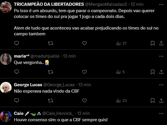 Muitos torcedores e até adversários dos gaúchos estão irritados com a decisão a ser anunciada pela CBF muito em breve. Para a grande maioria, era hora de suspender o futebol.