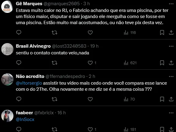 “Nada, pra mim não foi nada, ele se atira. Cavou muito, ele jogou a perna, não tem empurrão, não tem nada. Muito claro. Não foi falta, gol confirmado. Já checou, não tem contato”, respondeu Claus.