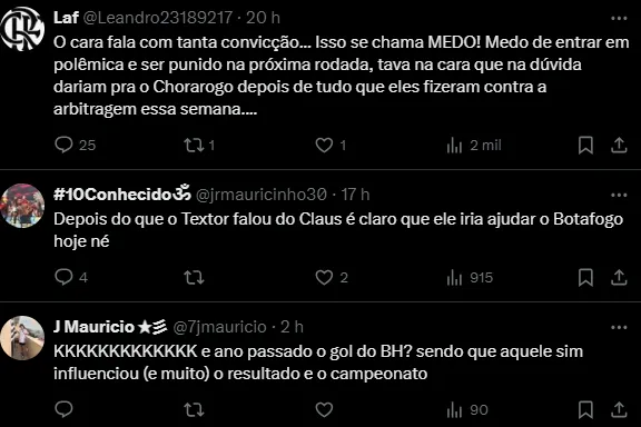 Por outro lado, parte dos rubro-negros também alertam ao técnico Tite mudanças que poderiam ocorrer no time titular. Dentre elas, Léo Ortiz no lugar de Fabrício.