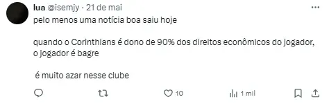 O Corinthians possui 90% dos direitos econômicos do jogador, que possui contrato até 31 de dezembro. Ambas as partes buscam um consenso para uma saída amigável.