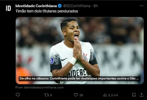 A próxima partida do alvinegro será contra o rival São Paulo, em jogo válida pela 9ª rodada do Brasileirão. O duelo será na Neo Química Arena no próximo domingo, 16, às 16h (de Brasília).