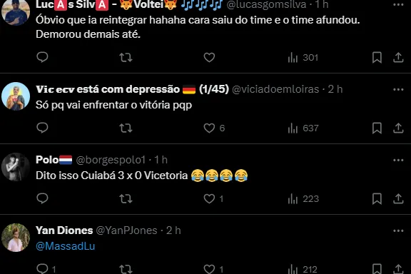 Relembre o que falou C. Dresch em abril: “O Deyverson tem contrato encerrando com Cuiabá em dezembro e já foi feita uma negociação para assinar um pré-contrato no início do ano de uma prorrogação e ele não aceitou”, disse.